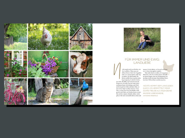Auf 160 Seiten nimmt Maria Romahn-Schmidt den Leser mit auf ihren Spaziergang – früh morgens um sechs. Wenn der Nebel sich schlaftrunken aus den Wiesen erhebt und der Raureif langsam, von den Blättern perlt. Die Autorin fängt die kleinen zauberhaften Momente ein und lässt sie mit ihren Collagen zu Kunstwerken werden.